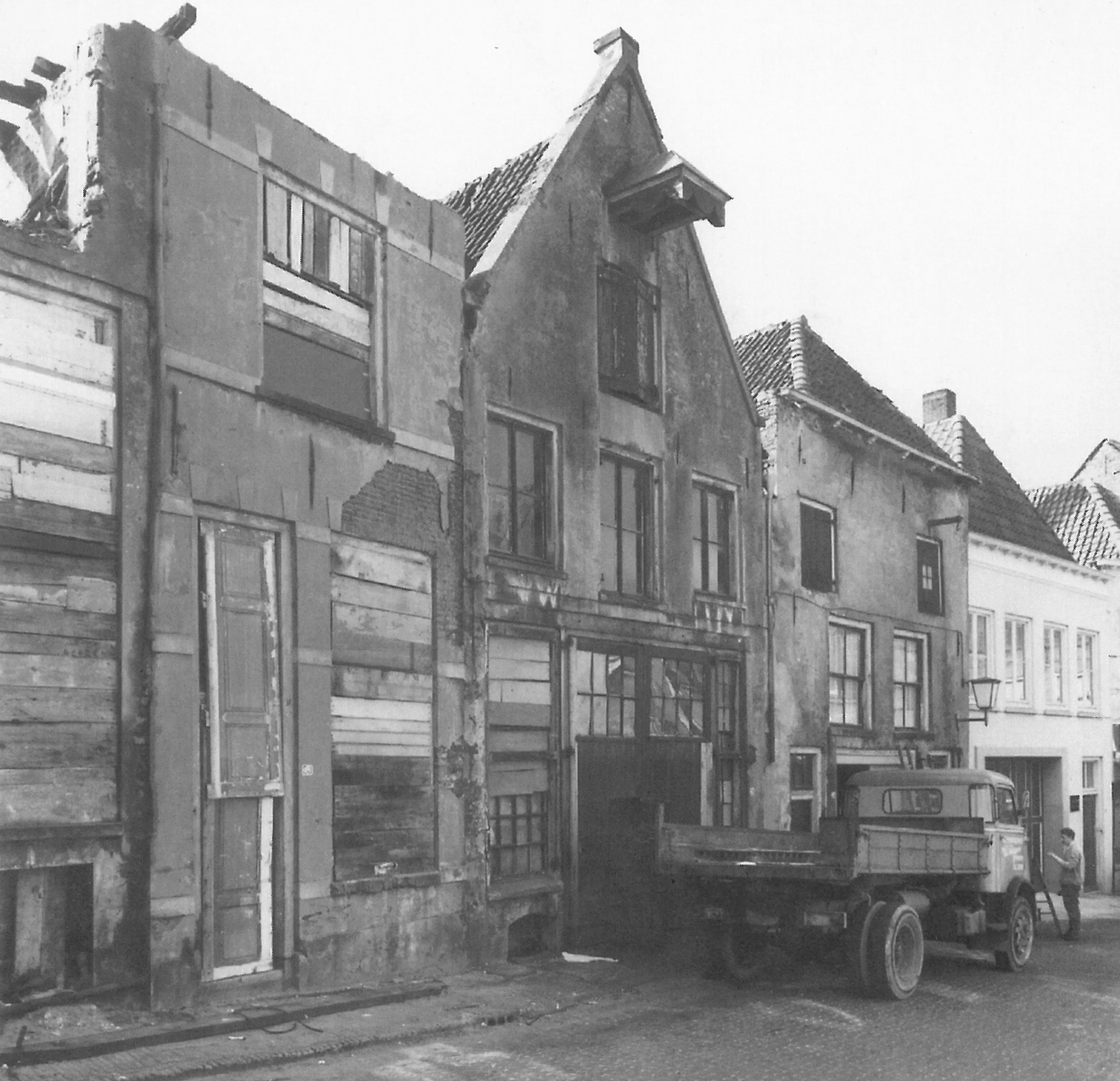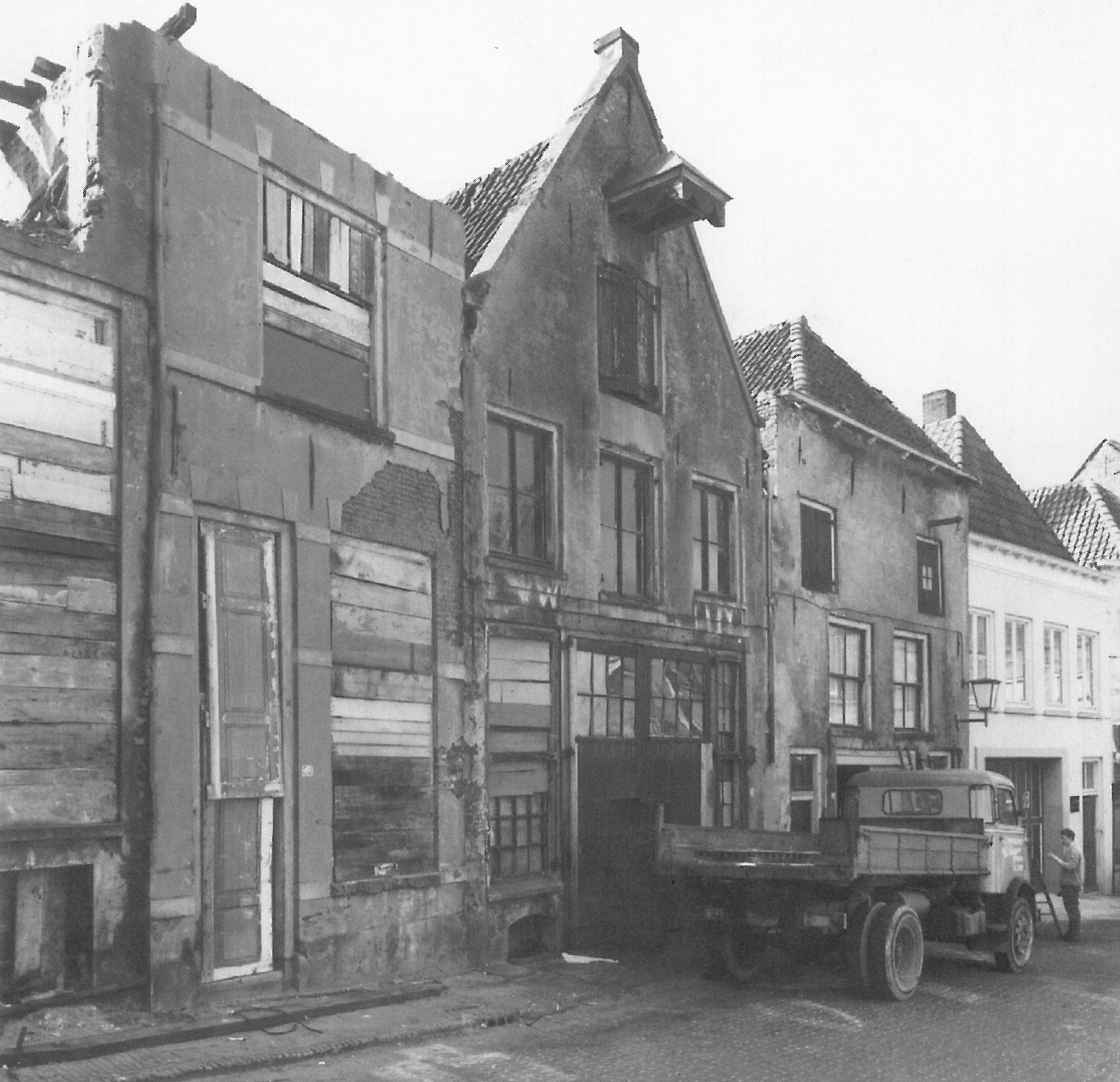 Ondanks lopende onderhandelingen werden in 1969 twee panden onverwacht gesloopt, waarop de vraag rees hoe de onstane ruimte te vullen. Binnen het silhouet van de oorspronkelijke gevels is toen op de nog aanwezige fundering en uitgaand van de vloerhoogten van het gesloopte huis, een nieuw uit twee delen samengesteld huis gebouwd met beneden kantoor- en boven woonruimte.