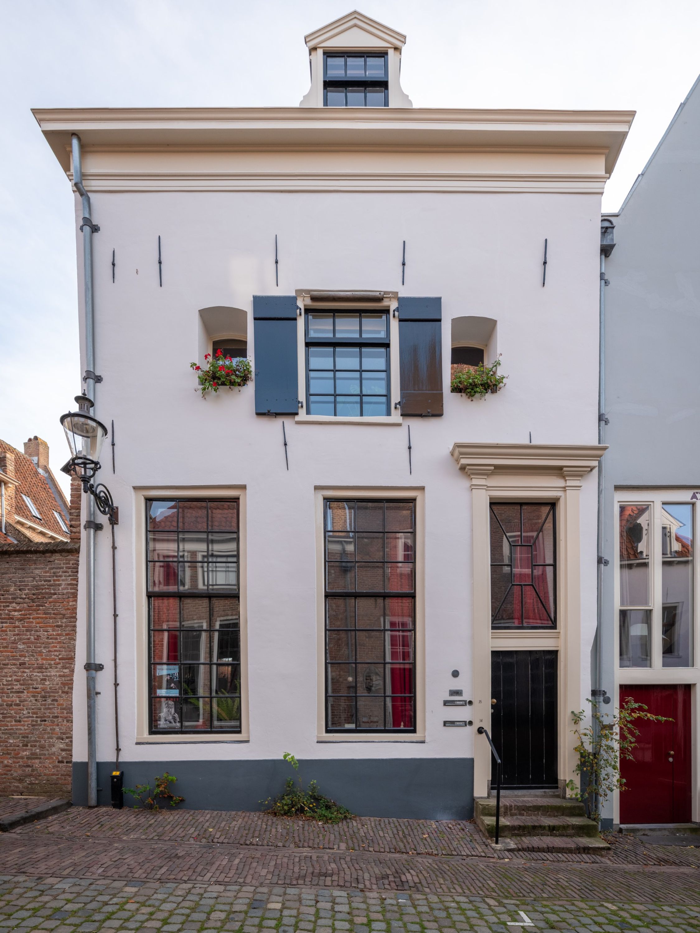 Dit pand is een metamorfose van een grotendeels nog origineel huis uit de 15e en 16e eeuw. Het verkeerde in zeer desolate toestand. In de voorgevel kwamen toen ook de kleine luikopeningen tevoorschijn en werd van het hijsluik een venster gemaakt. Beneden werden de hoge schuiframen, het deurkozijn met bovenlicht en de stoep hersteld.