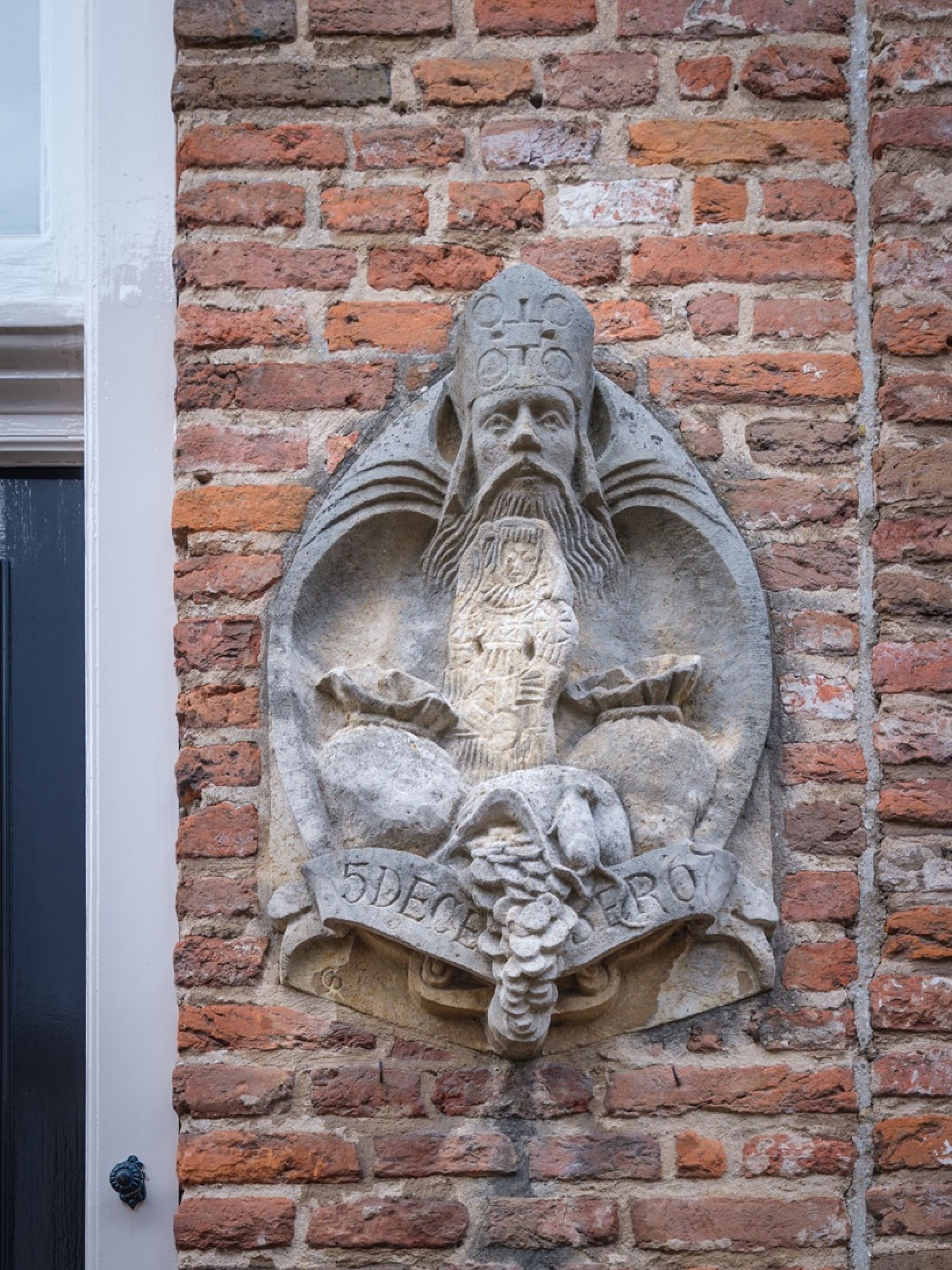 Op dit prachtige gerestaureerde pand dat al in de 15e eeuw wordt genoemd, prijkt een gevelsteen die herinnert aan de onthulling op 31 maart 1969 door Prins Claus in de stromende regen. Aanleiding was de subsidie die op 5 december 1967 was verleend door de toenmalige minister Marga Klompe. Zij was destijds de eerste vrouwelijke minister in Nederland. Toen het doek viel, zag men de patroon van het Bergkwartier, Sint Nicolaas, met een zak vol geld waarmee een begin kon worden gemaakt met het herstel van deze wijk. De Sint Nicolaasvrijer (Speculaaspop) in de schoot van de goedheiligman wordt door de kwaaddenkende geesten wel in verband gebracht met deze vrijgezelle bewindsvrouwe.