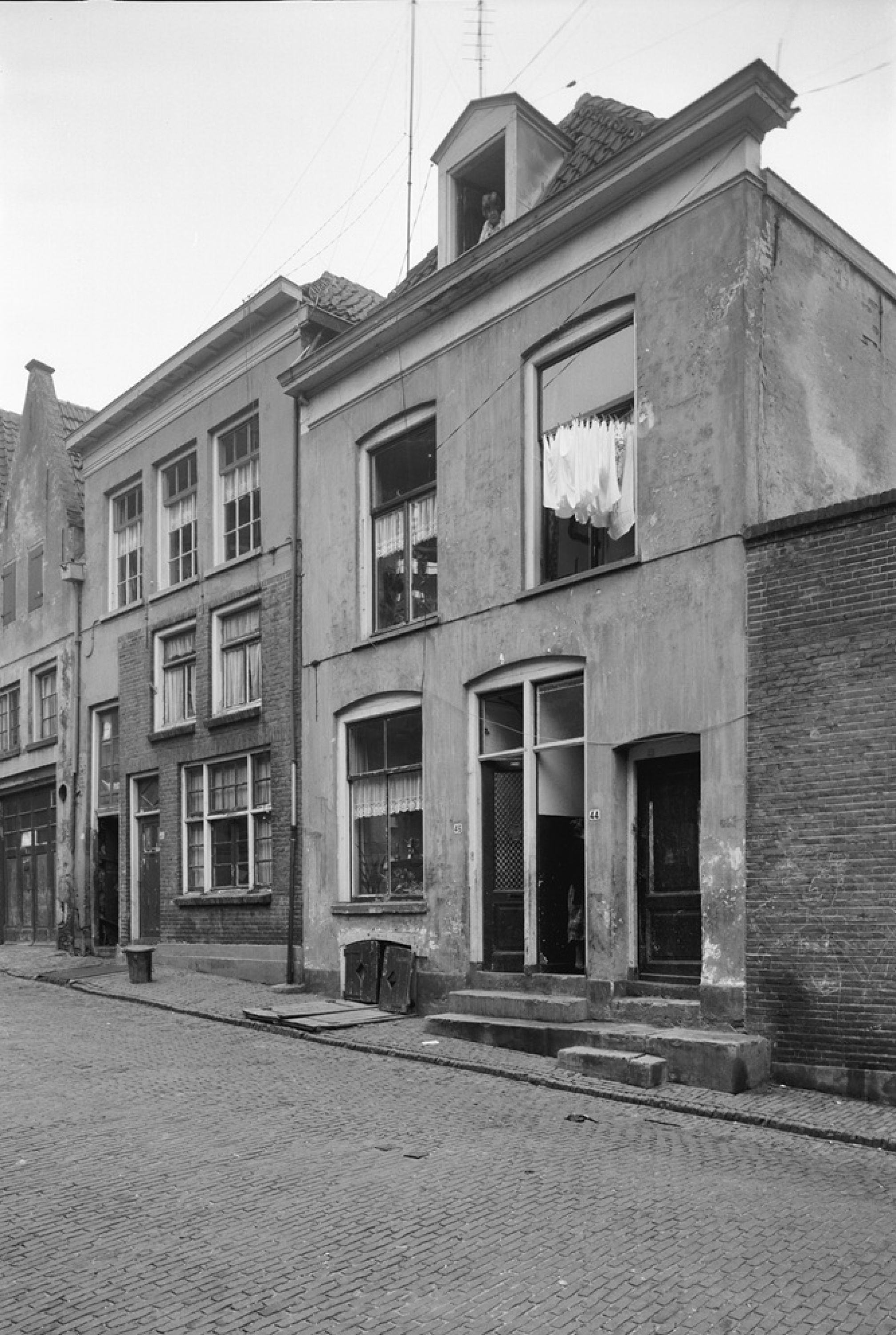 Geen pand kan ongeschonden eeuwenlang overleven. Heel duidelijk is dit te constateren bij het pand Bergstraat 44-46. In 1441 werd dit toen al oude huis bij testament nagelaten door een vrome man die had bepaald dat de helft van zijn huis en erf naar zijn erfgenamen zou gaan en de andere helft "in die ere Goets".