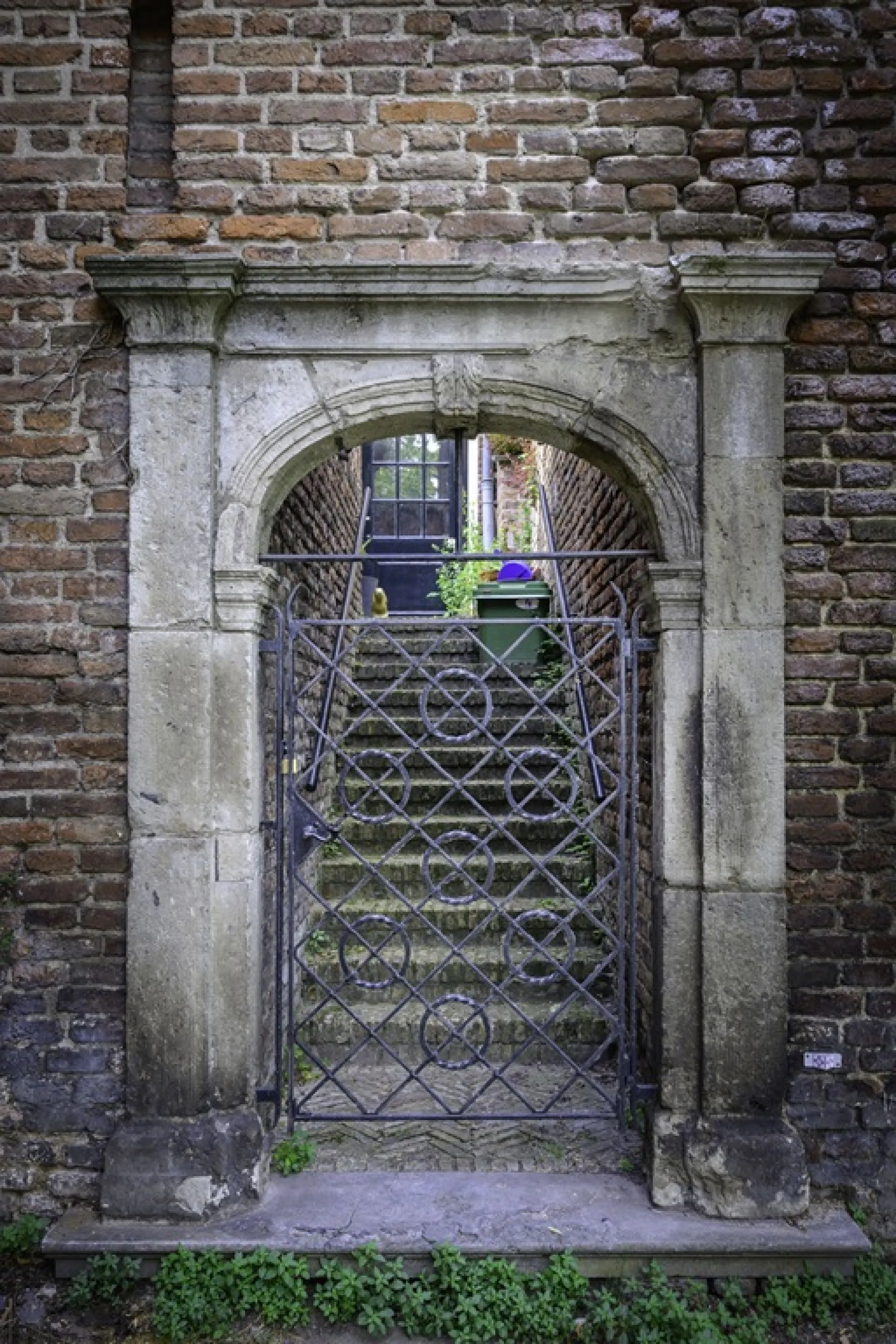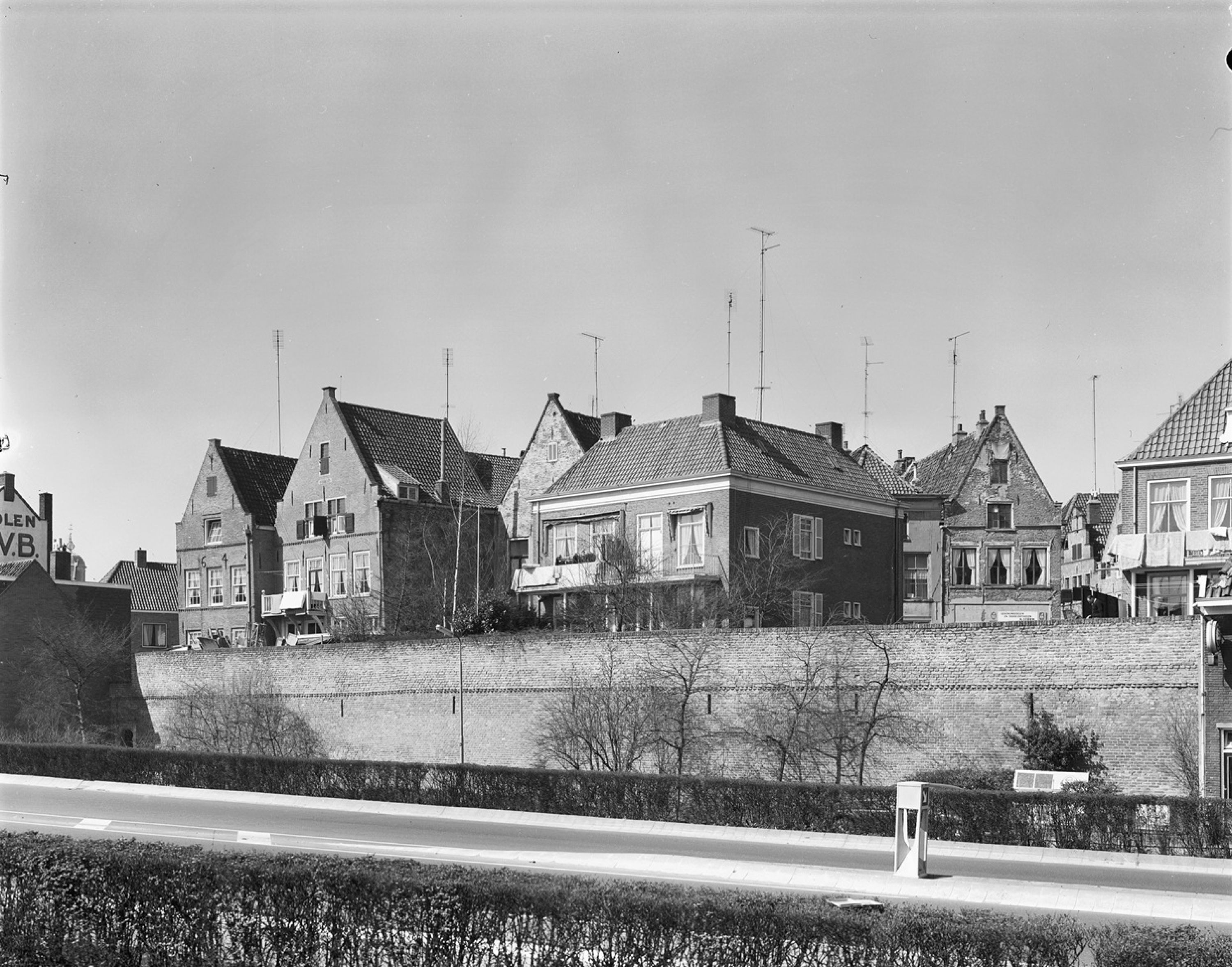 Het pand is gebouwd tegen de restanten van de oude stadsmuur.
