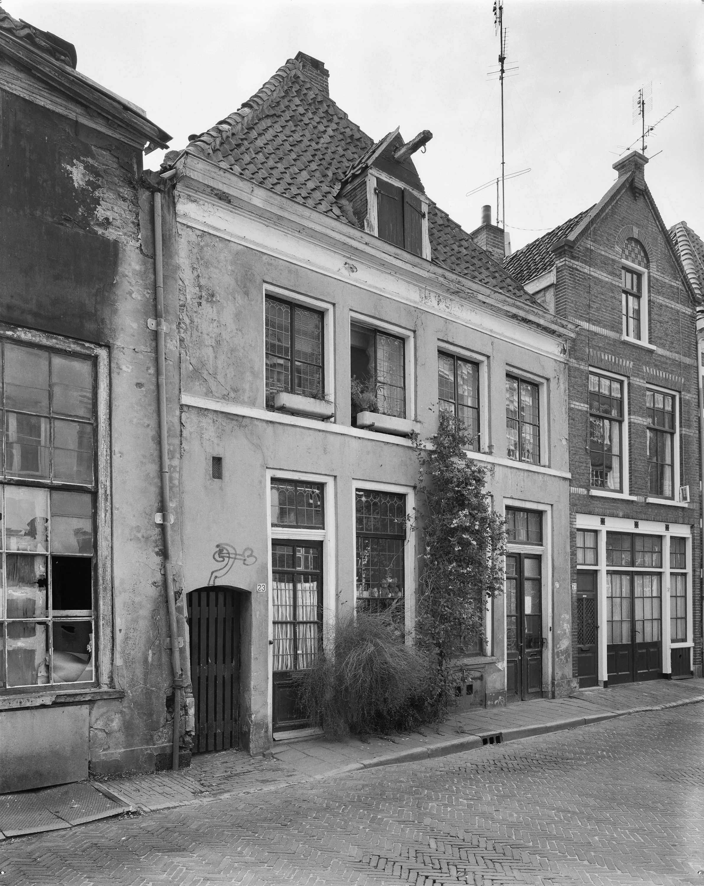 Vanaf de straat maakt dit pand een 19e-eeuwse indruk, maar binnen vindt met een veel oudere structuur, misschien wel uit 1500. Door armoede gedwongen werden vroeger deze huizen zo ingericht dat zo veel mogelijk huishoudens er een onderkomen vonden. Op een ingenieuze manier werden in de vorige eeuw in dit huis vier woningen ondergebracht. In 1840 woonde hier links twee daglonersgezinnen en rechts een mandenmaker en een timmerman met hun gezinnen.