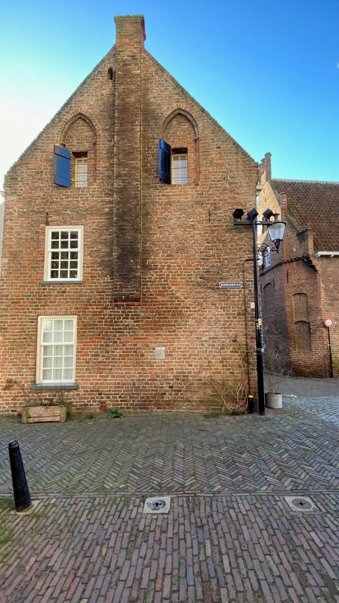 Het kleine huisje op de hoek van het Bergkerkplein en Kerksteeg is het oudste vrij gaaf bewaarde bakstenen burgerhuis van Deventer. In de zijgevel is een fraaie gotische spitsboog te zien. Het is in 1300 gebouwd, nog zonder subsidie.