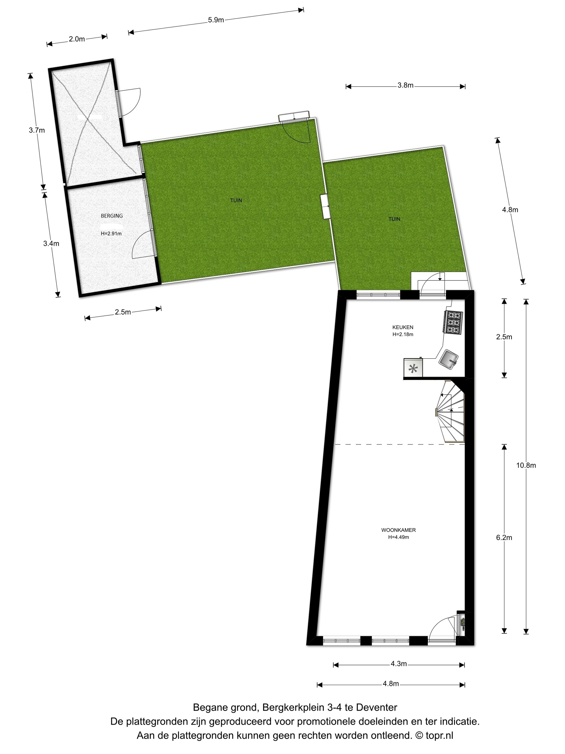 In de achtertuin bevindt zich de berging, ook bereikbaar via de achterom.