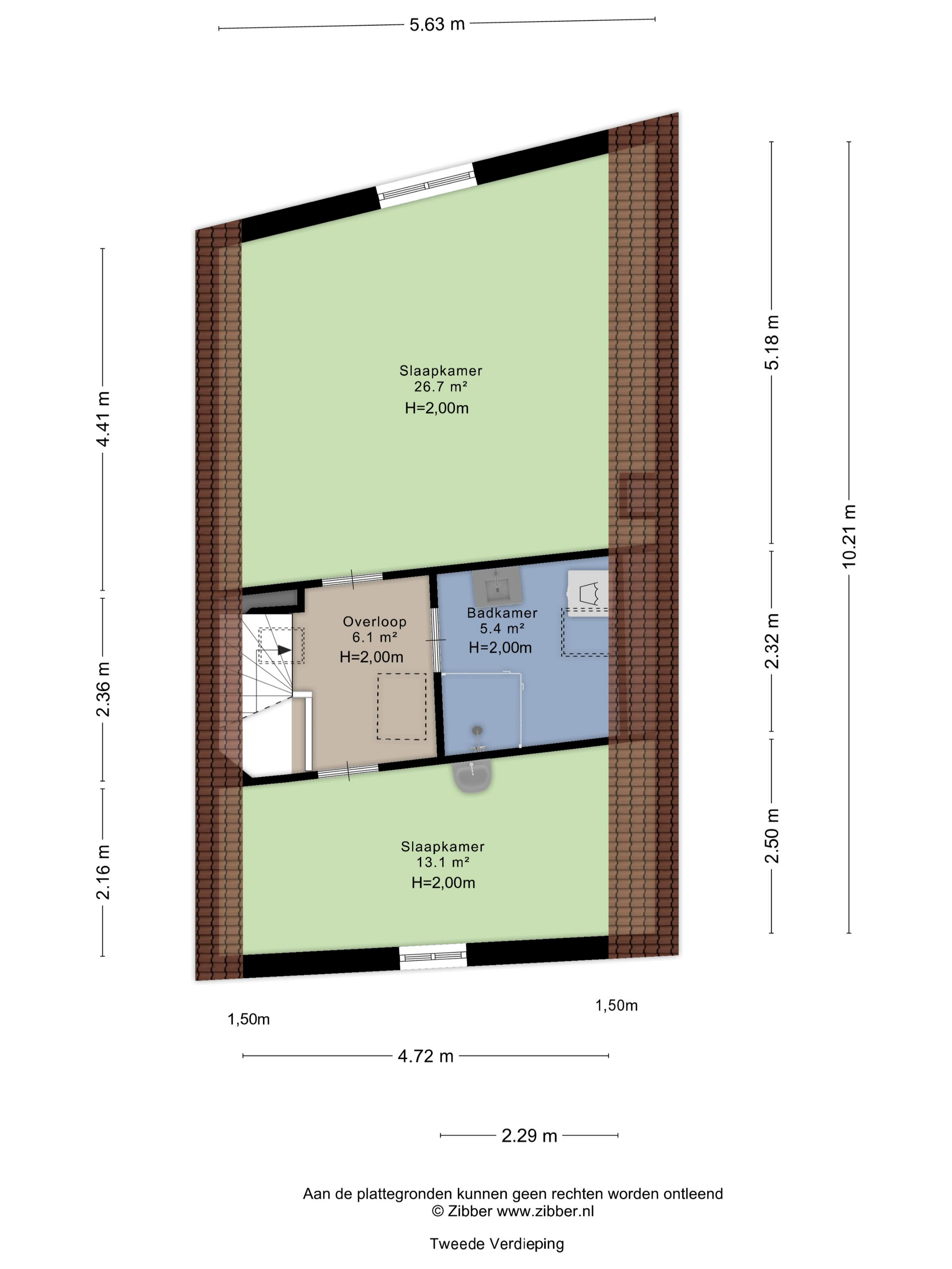 Op de tweede verdieping zijn twee ruime slaapkamers en de badkamer met wastafelmeubel, toilet en douche.
