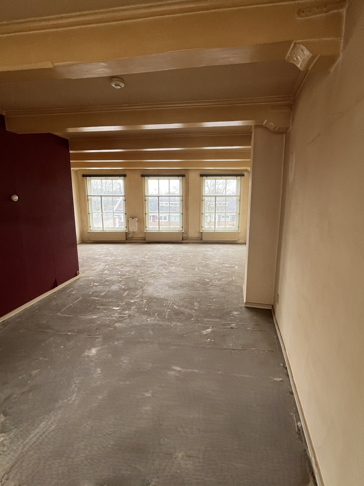 De woning staat op dit moment leeg en er worden diverse onderhoudswerkzaamheden uitgevoerd, waaronder het binnenschilderwerk en de bekleding van de trap.