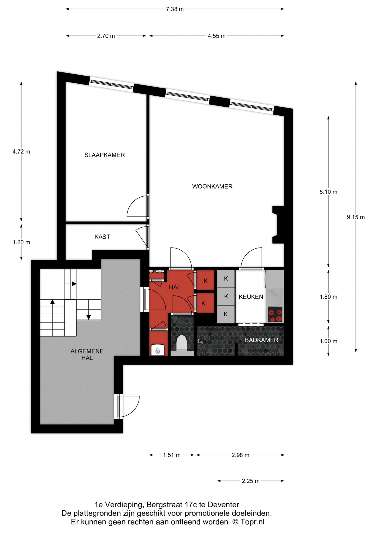 Leuk 1 persoons appartement gelegen op de 1e verdieping van het pand Bergstraat 17a t/m f.