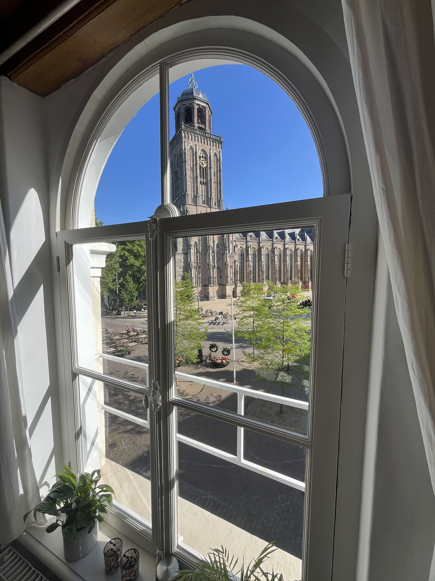 Hal, toilet, woonkamer groot ca. 16 m2 met uniek uitzicht over het Grote Kerkhof, half open keuken. De keuken wordt geheel vernieuwd en zal zijn voorzien van een inductiekookplaat, combi-oven, koel- vriescombi en een vaatwasser.