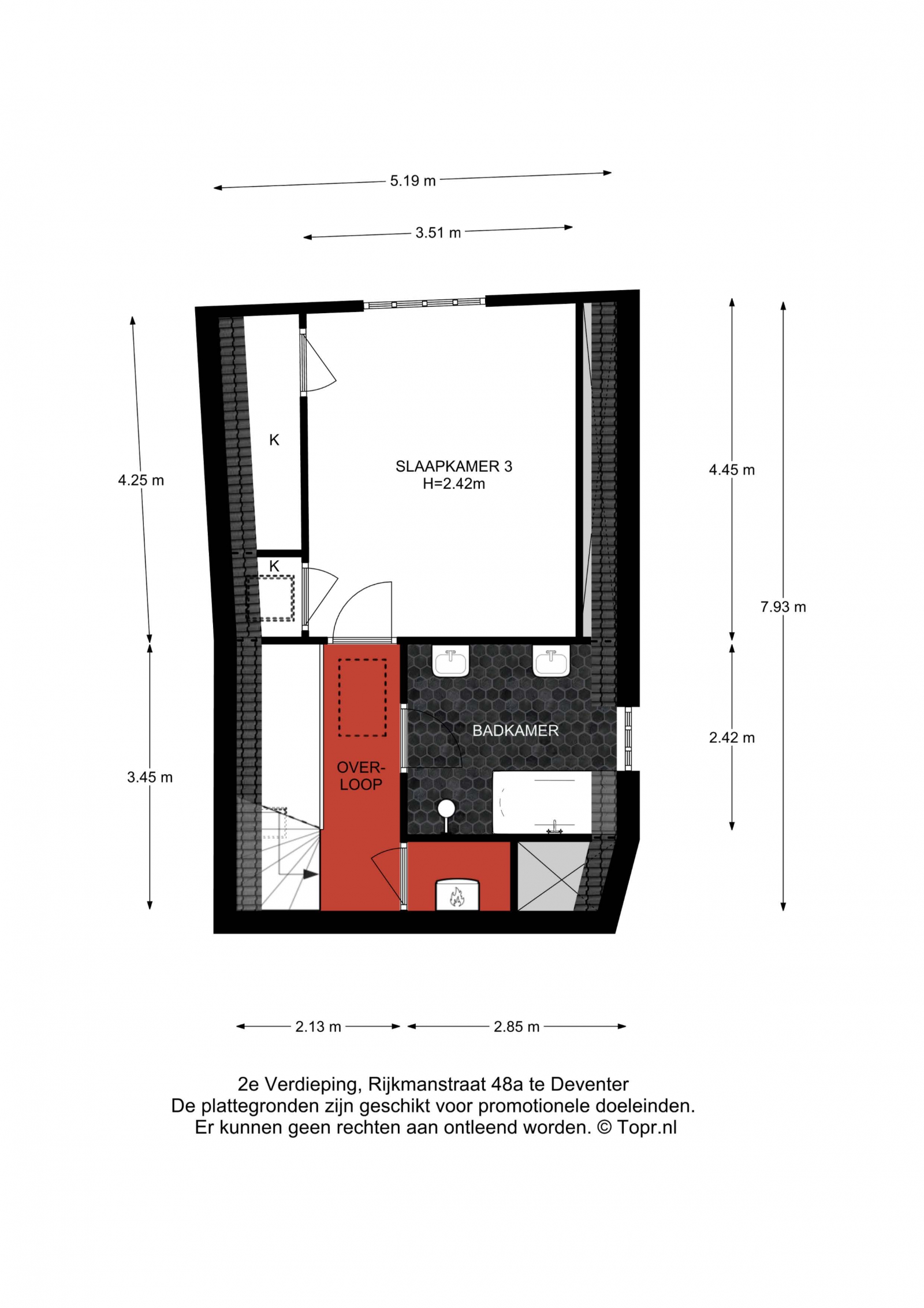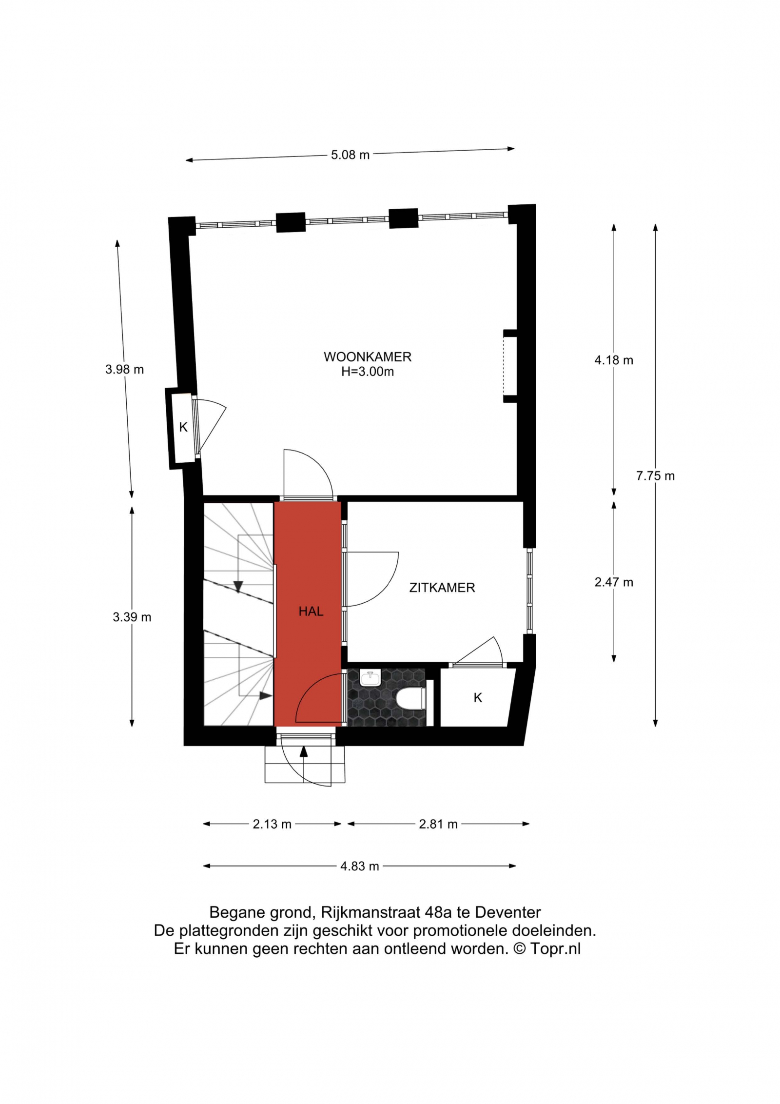 in de hal bevindt zich de toegangsdeur naar de woning nr. 48a.