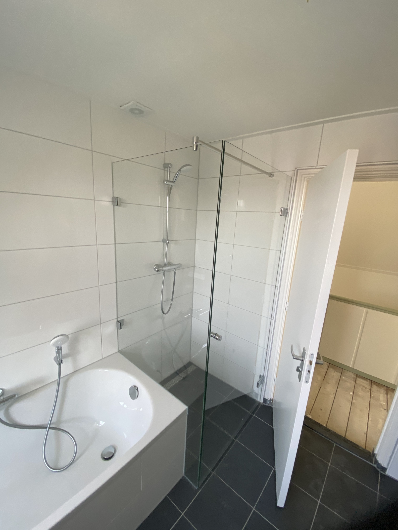 2e verdieping: 3e slaapkamer met ruime inbouwkast, badkamer met bad, aparte douche en dubbele wastafels.