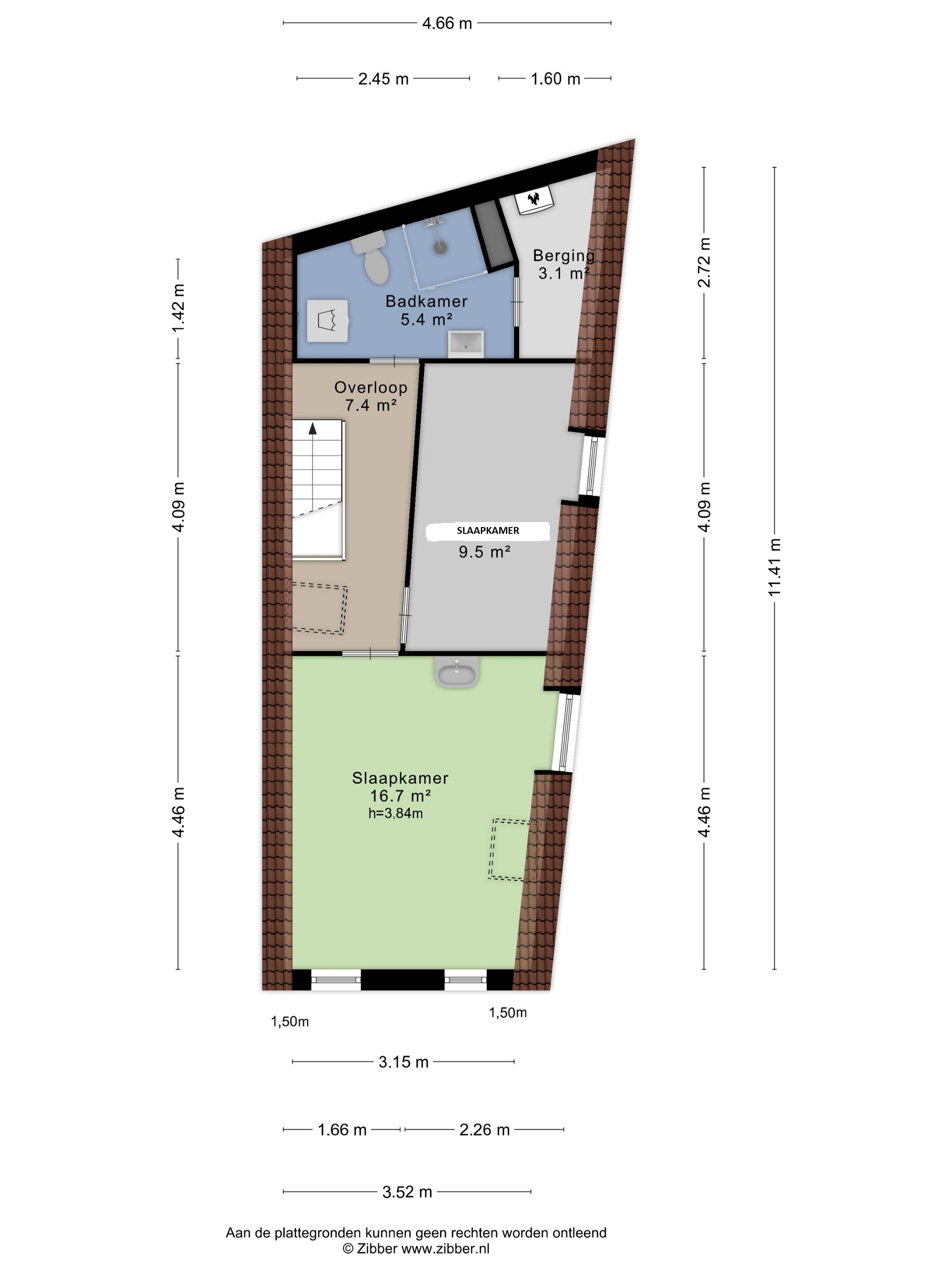 De zolderverdieping (ca. 15 m2) is bereikbaar via een vlizotrap.