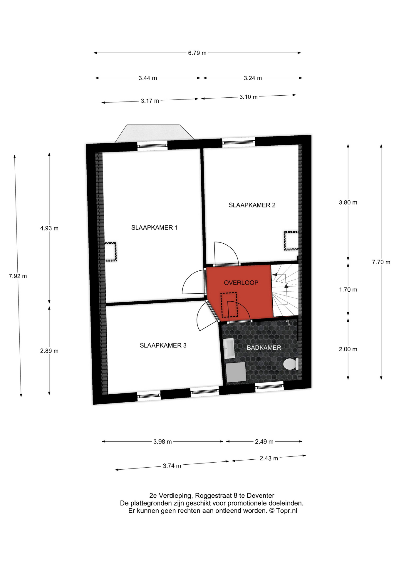 Twee slaapkamers aan de achterzijde van het pand en een derde slaapkamer aan de voorzijde, badkamer met douche, wastafel, toilet en aansluiting voor de wasmachine.