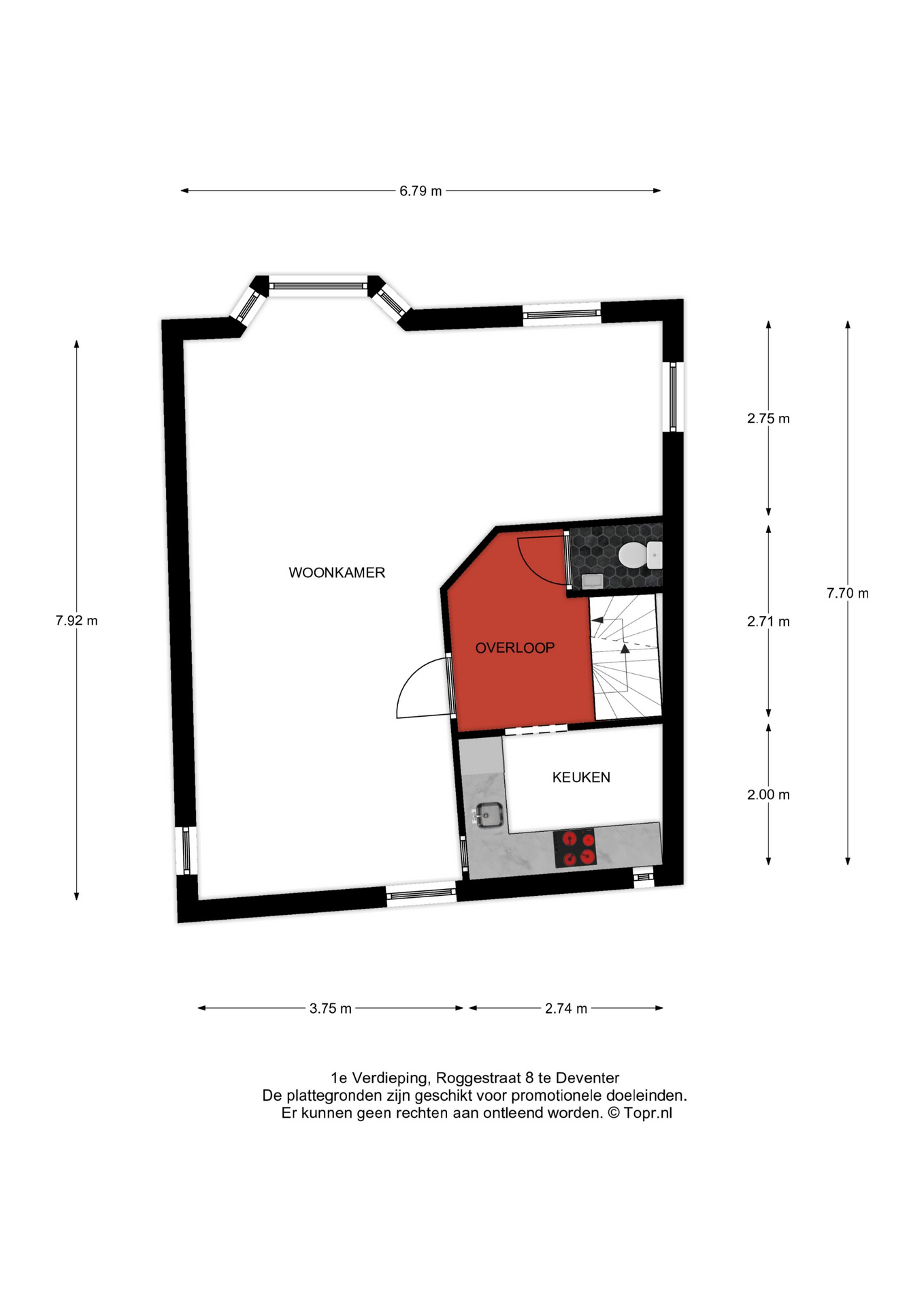 Overloop met toilet, dichte keuken voorzien van inductiekookplaat, oven, afzuigkap en vaatwasser, royale L-vormige woonkamer van ca. 40 m2 met veel lichtinval.